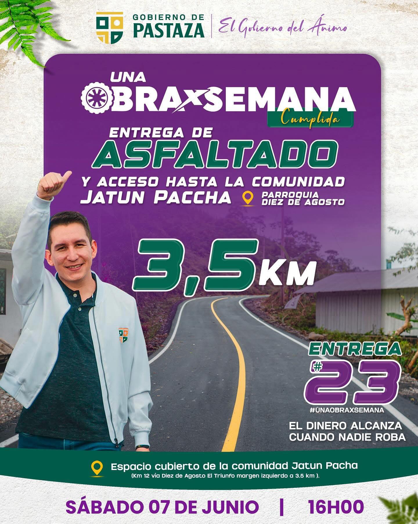 Sin detenerse Pastaza. #UnaObraXSemana vamos por la #23 y el triple en total desde el inicio de gestión.