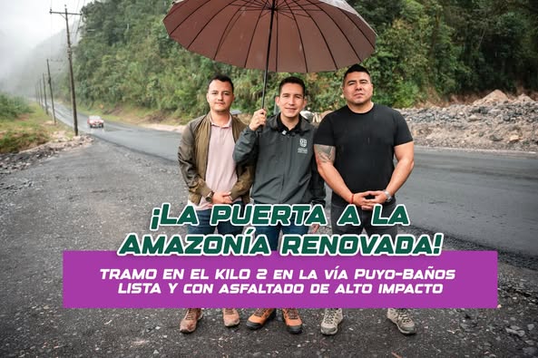 #VialidadEl prefecto de Pastaza André Granda realizó una visita técnica al tramo rehabilitado del tramo Kilo 2 en la vía Puyo–Baños, donde se ejecuta una importante intervención de reconformación y