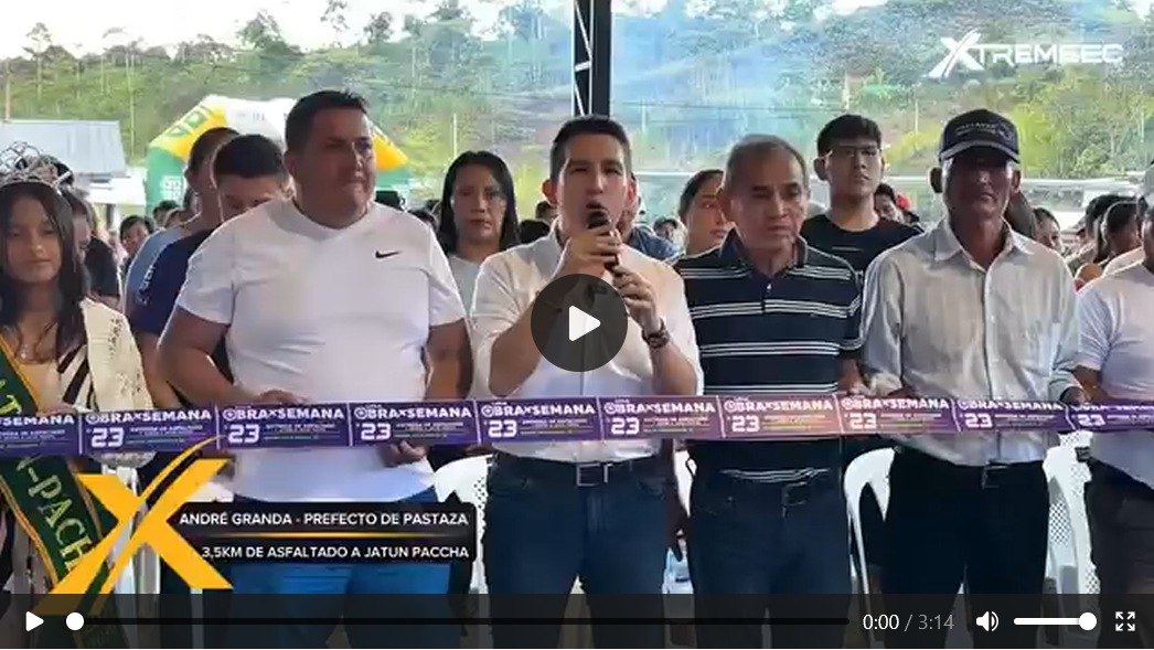 La Prefectura de Pastaza entregó este sábado el asfaltado y acceso vial de 3.5 kilómetros hacia la comunidad de Jatun Paccha, parroquia 10 de Agosto. La obra supera los 700