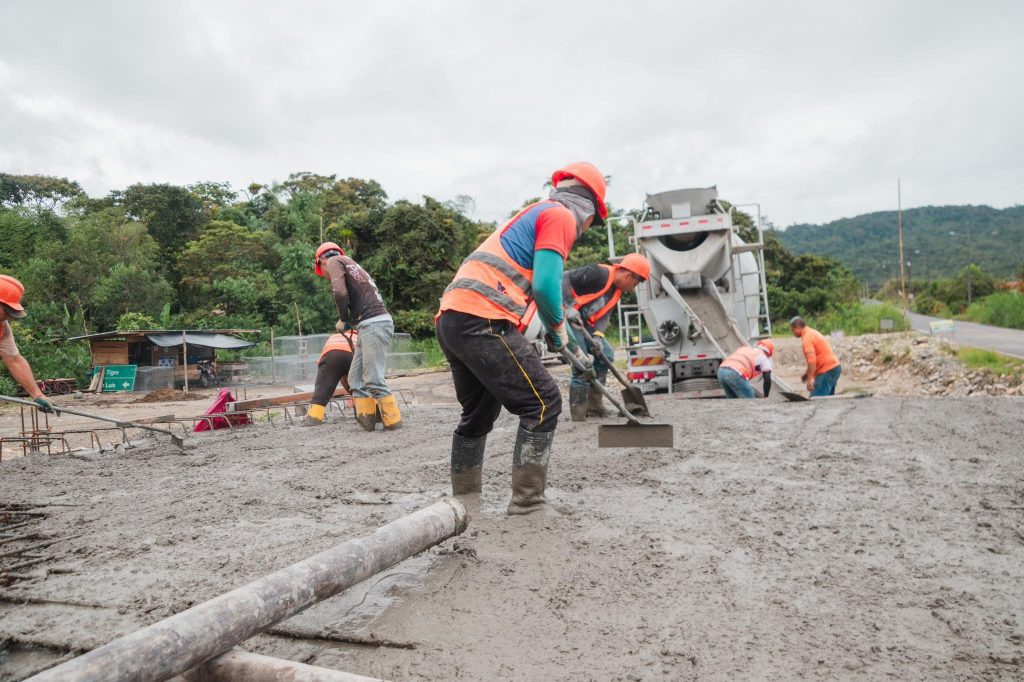 Continúa el trabajo de fundición de hormigón en el puente sobre el río Tigre, en Mera, bajo la gestión de la Prefectura de Pastaza y el liderazgo de André Granda.