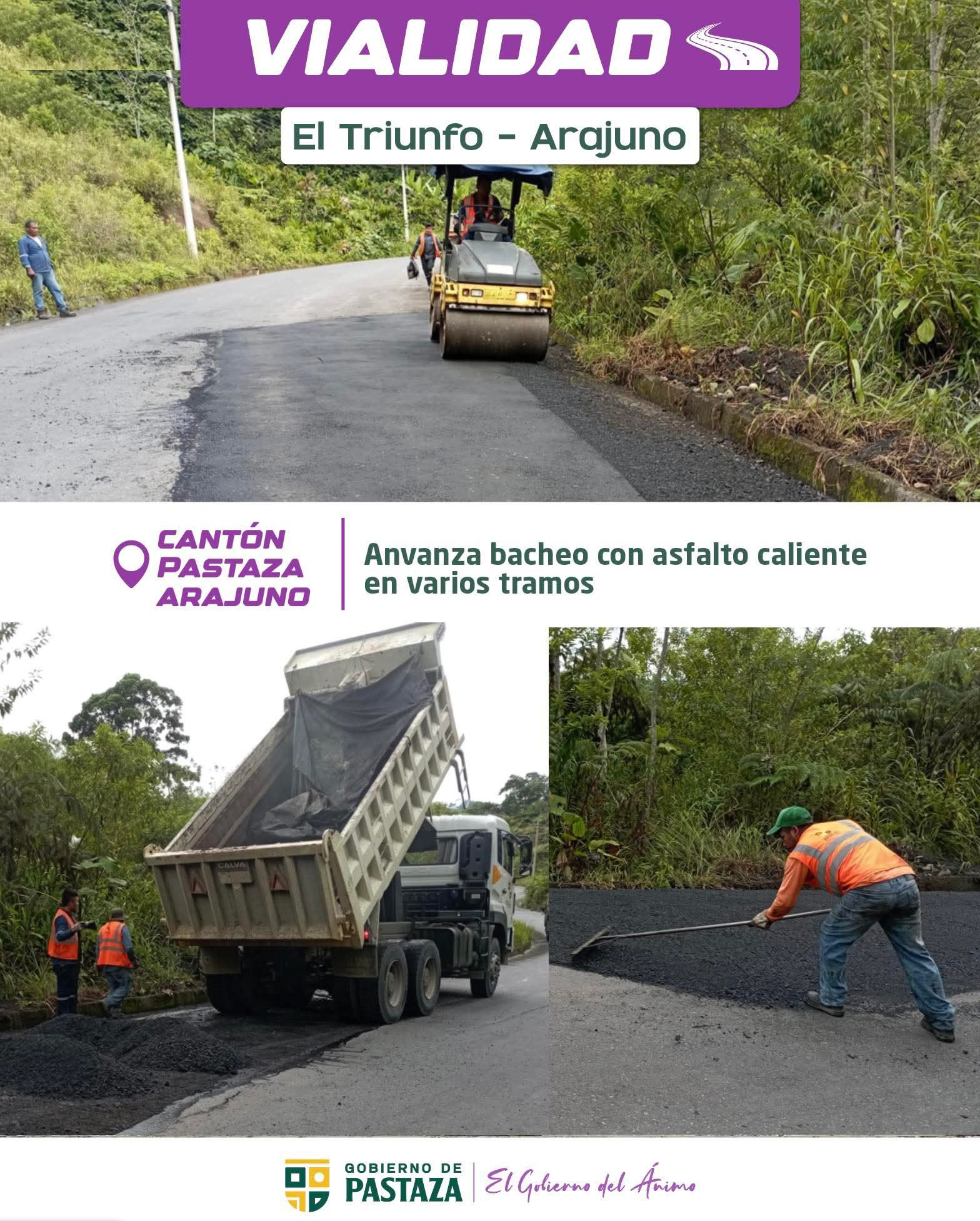 Avanzamos con el bacheo asfáltico entre El Triunfo y Arajuno