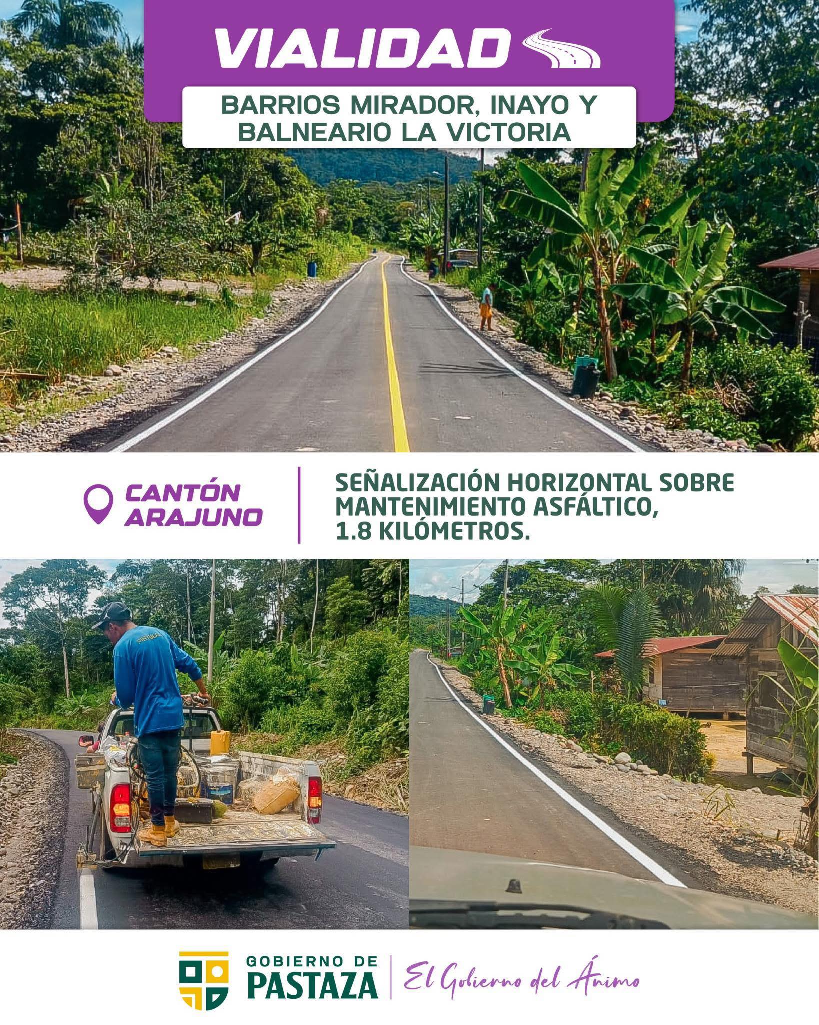 En Arajuno según planificación, señalízamos sobre el mantenimiento asfáltico de 1,8km