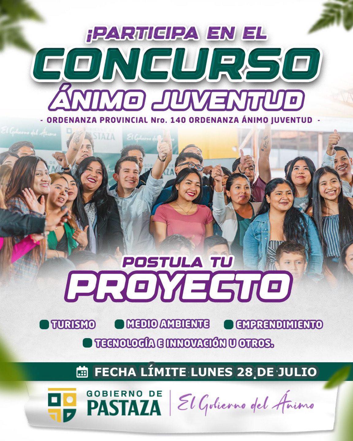 ¡Joven pastacense tu oportunidad ha llegado! Postula para conseguir el Capital Semilla «Ánimo Juventud». Joven pastacense de 18 a 29 años con ideas y proyectos listos para despegar. En el