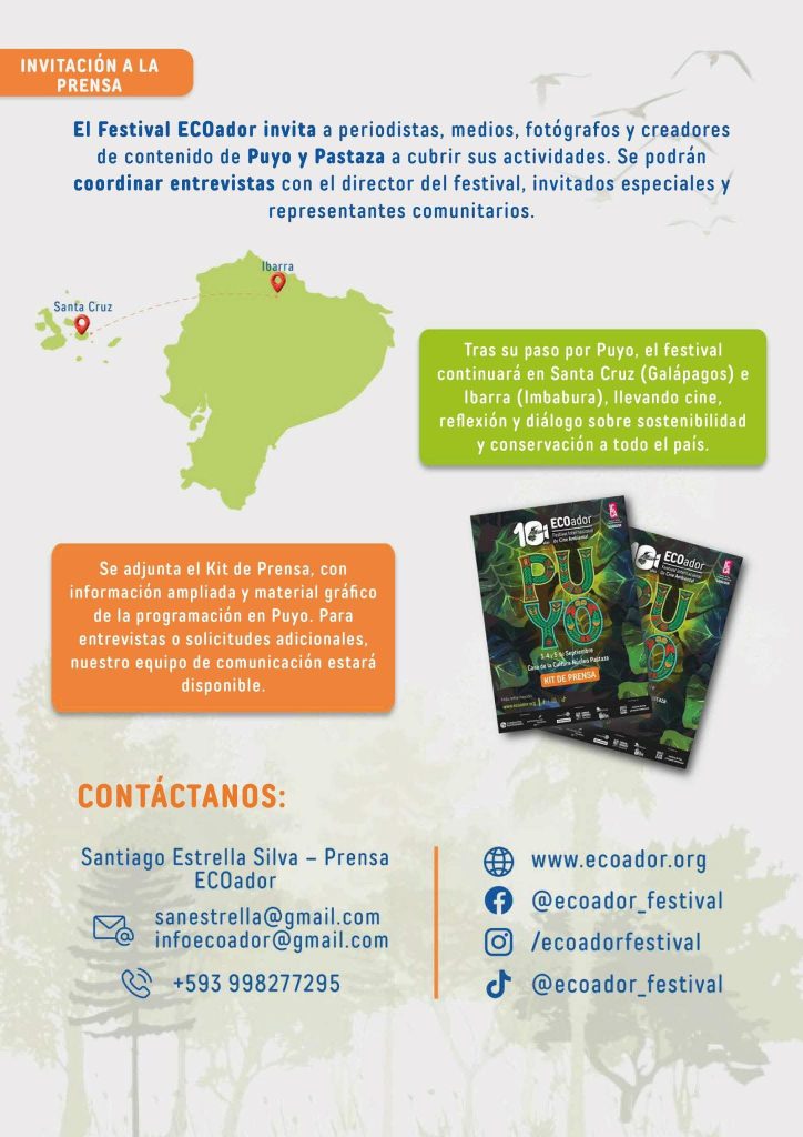 Del 3 al 5 de septiembre llega a Puyo el ECOador, Festival Internacional de Cine Ambiental en el auditorio de la Casa de l Cultura .