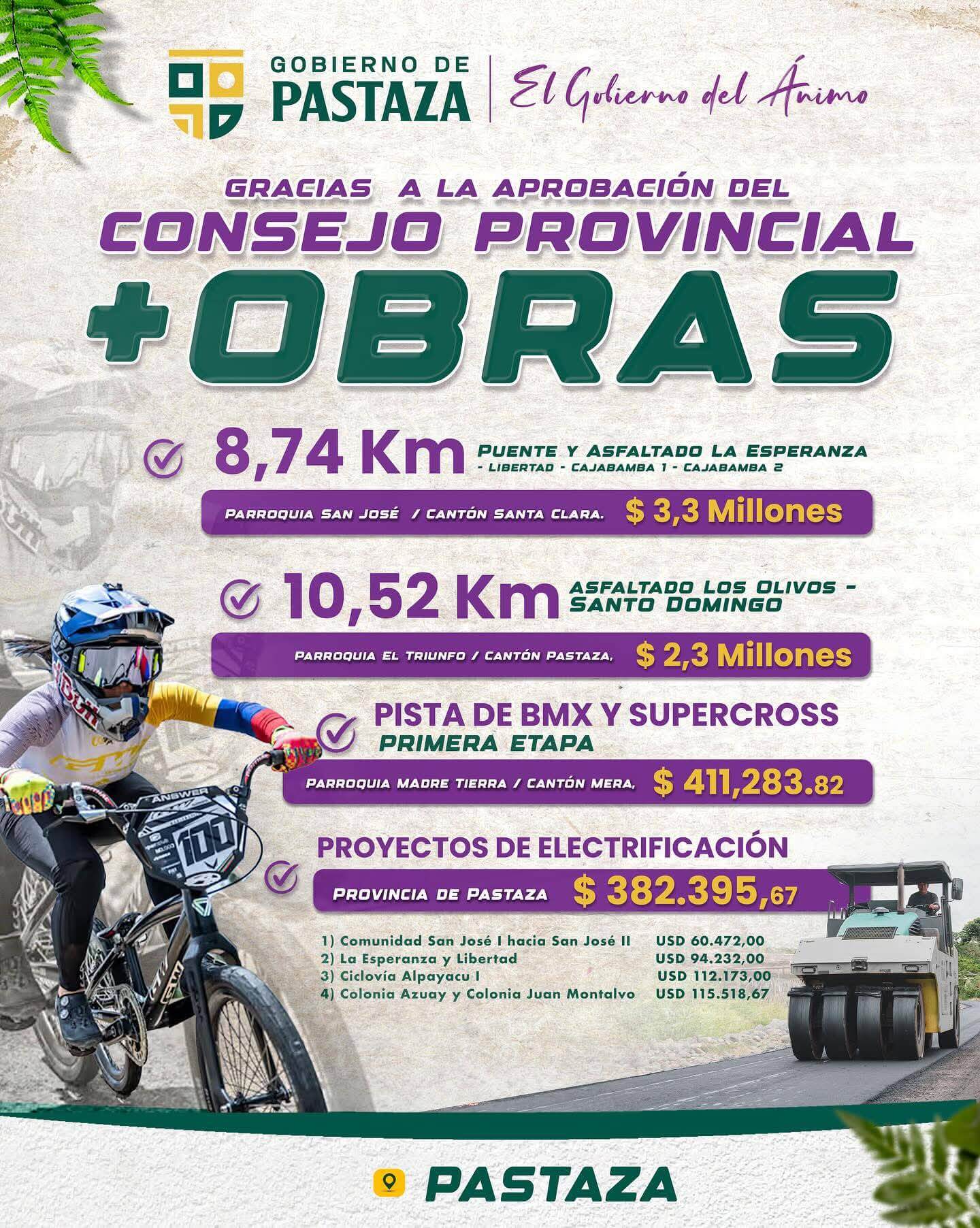 ¡Bien por Pastaza! En sesión extraordinaria del Consejo Provincial, se aprobaron nuevas obras viales, de electrificación y deportiva que pronto serán una realidad.