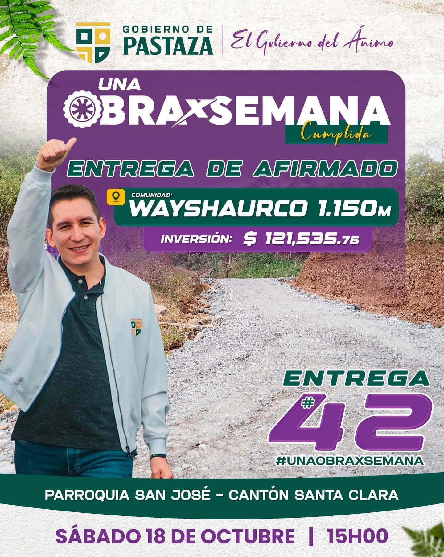 Bien por Pastaza !!!! 42 Obras X semana? Si!!!! Y sin detenerse !!!