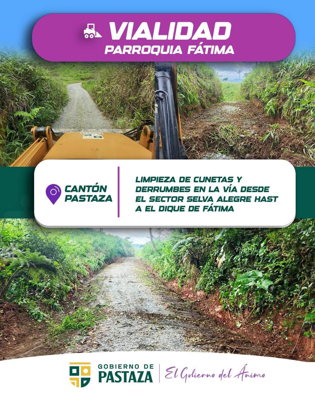 El Gobierno de Pastaza avanza con la limpieza de cunetas y atención de derrumbes en la vía que conecta Selva Alegre con el dique de Fátima.